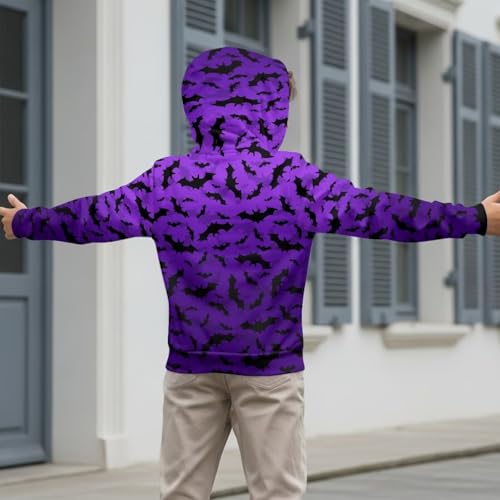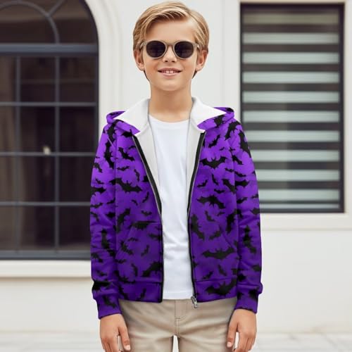 HOT ! Black Kids Hoodie Boys Zip Up Hoodie Size 6-16 Trendy Spooky Season Sweatshirt with Kangaroo Pocket