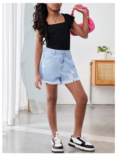 WDIRARA Girl's Square Neck Ruffle Cap Sleeve T Shirt Tee Casual Rib Knit Top 6