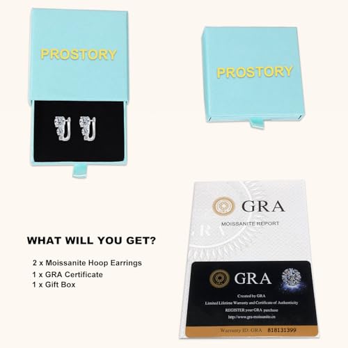 • EXCELLENT GIFT: For birthday, anniversary, holidays, stocking stuffers, graduation, Christmas, Valentine's Day, Mother's Day, Thank You or simply "Thinking of You". PROSTORY moissanite hoop earrings is put in a very delicate jewelry box, including the GRA certificate.