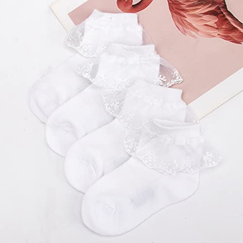 Looching 4 Pairs Toddler Baby Girls Lace Princess Socks Cotton Ruffled Solid Ankle Socks 5