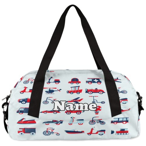 Transportation Cars Custom Name Kids Duffel Overnight Bag for Little Boys Girls Teen, Cute Cartoon Tie Dye Pattern Personalized Small Gym Sport Duffel Bag, Customized Kids Gifts 5