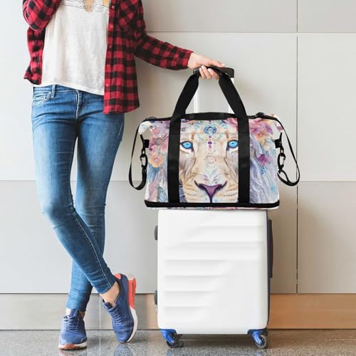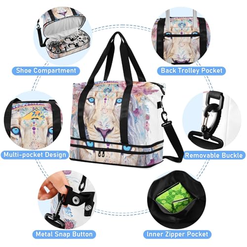 ALAZA Sports Duffel Bags with Toiletry Bag Set,Lion Travel Duffel Bags Multi Pockets Weekend Bag 7