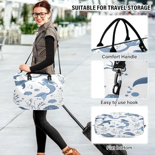 HOT ! Travel Duffle Bag Weekender Bags Overnight Bag with Toiletry Bag Gym Duffel Bag Blue Mermaid Dolphin for Travel Business Trips Sport