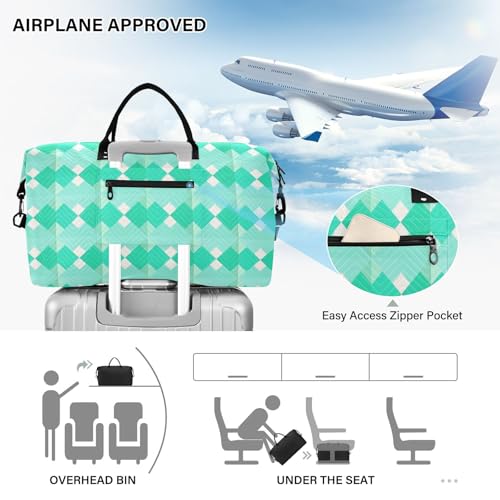 Oversized Travel Duffel Bag Turquoise Lozenge Rhomb Large Carry On Bag with Toiletry Bag for Airplane Traveling Waterproof bulto de para hombre 1