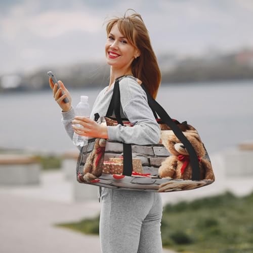 Travel Duffel Bag Lightweight Waterproof Carry On Tote Bag Foldable Weekender Overnight Bags Cute Bear Valentine Gift Sport Gym Bag For Women Men 6