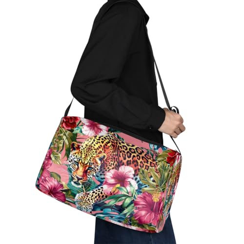 More information about Leather Travel Duffle Bag for Women Men, Leopard Tropical Flower Floral Small Sports Gym Bag Weekender Overnight Bags Underseat Carry on Luggage Bags for Airplanes, Personal Item Travel Bag,B-915