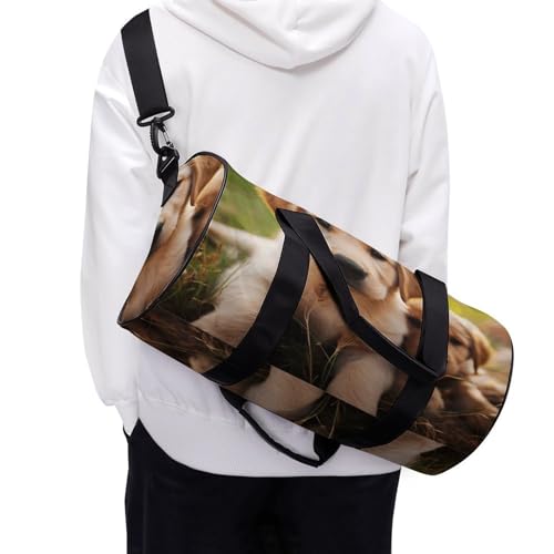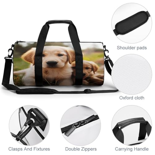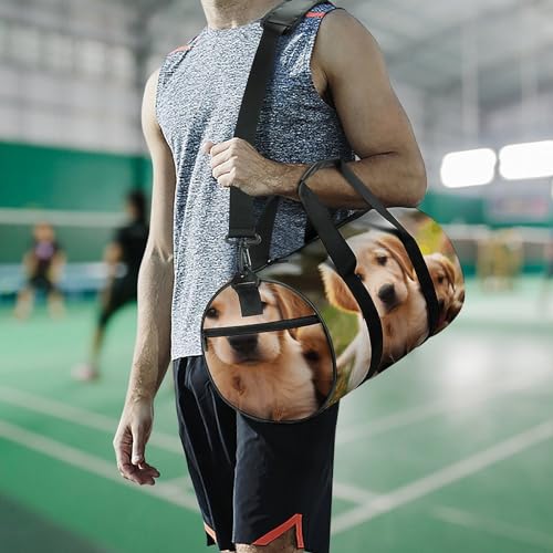 Cylindrical Gym Bag,Cute Golden Retriever Puppy Sports Gym Bag,Workout Bags,travel Weekender Bag,Duffle Travel Bag for Men Women 4