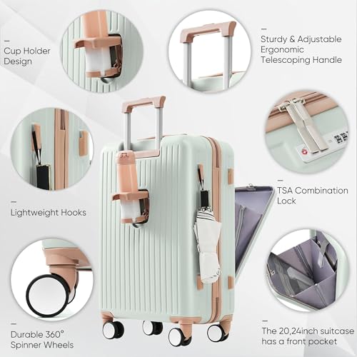 Convenient 20-Inch Carry-On Luggage Set with Expandable Travel Bag, USB Port, Cup Holder, Durable Hard Shell in Grey Green 6