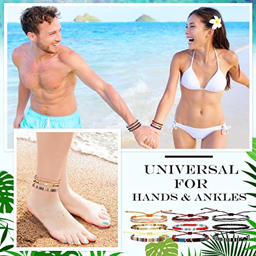 Yinkin 18 Pcs Boho Surfer Bracelet Anklet Adjustable Beaded Anklets Handmade Braided Bracelet Colorful Summer Beach String Rope Boho Jewelry for Women Men 1