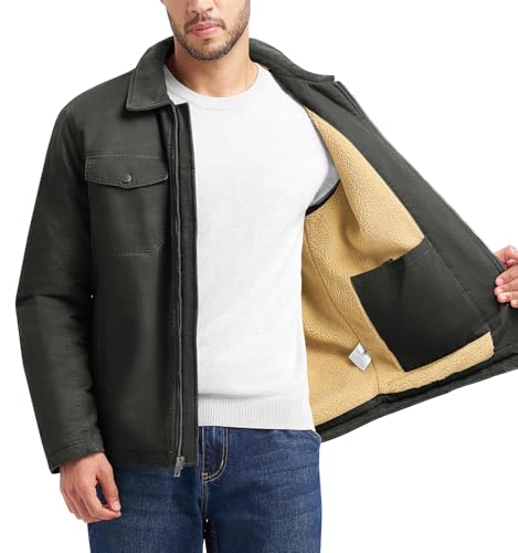 TBMPOY Men's Winter Canvas Jacket Thick Sherpa Fleece Lined Trucker Work Utility 5 Pockets Cotton Warm 5