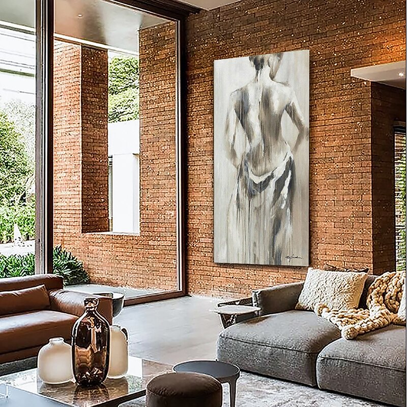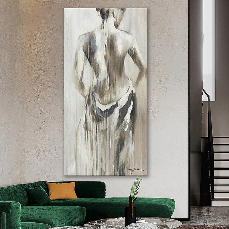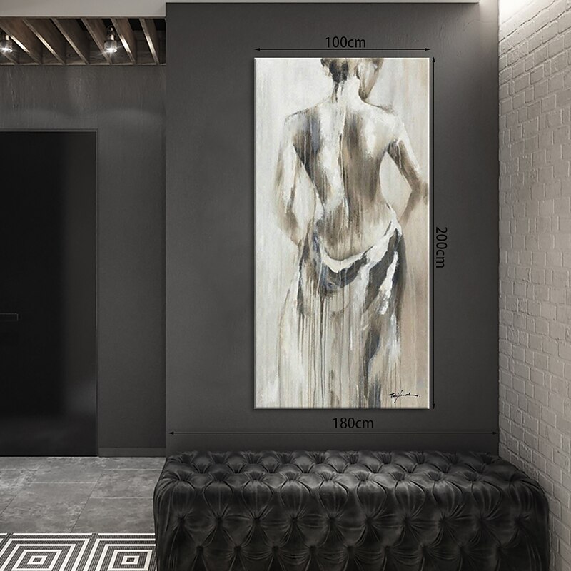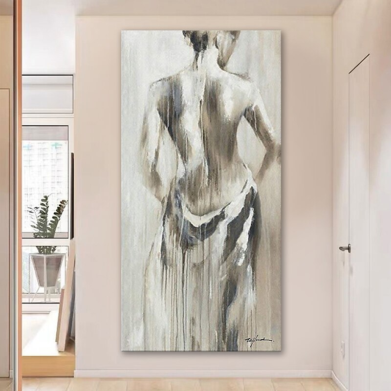 More information about Oil Painting Hand Painted Vertical Abstract People Modern Rolled Canvas (No Frame)
