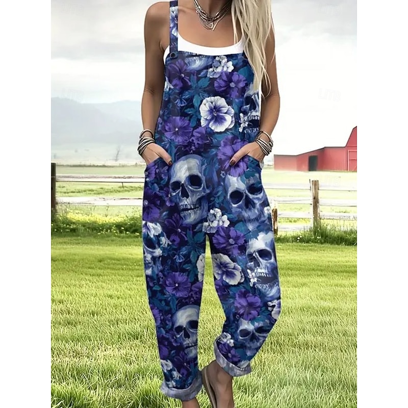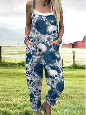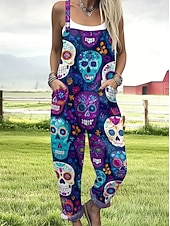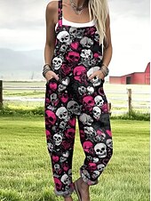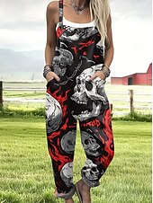 More information about Halloween Women's Jumpsuit Active Graphic Sleeveless Sleeveless Wide Leg Pocket Buttons Vacation Street Loose Fit Black Red Navy Blue Summer
