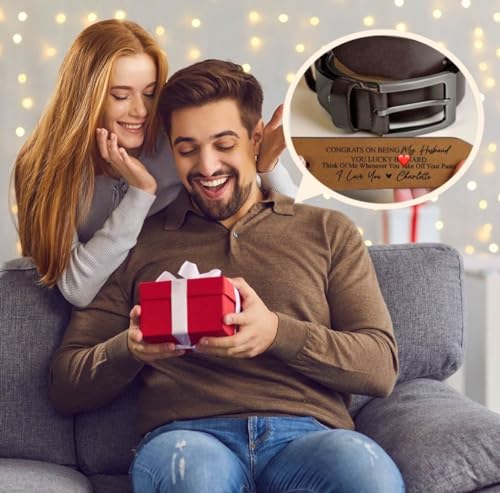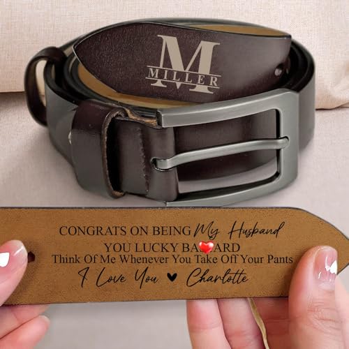 • PERSONALIZED ENGRAVED LEATHER BELT for Men: Crafted with precision and care, our leather belt can be personalized with the words "Congrats On Being My Husband You Lucky Bastard", making it a rare and meaningful accessory.