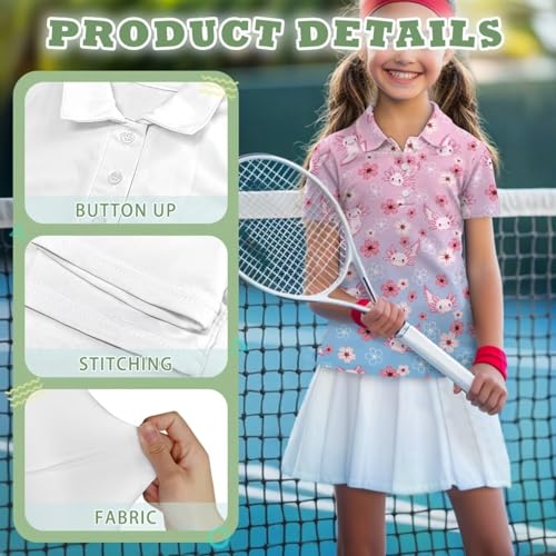 Girls' Button-Down Golf Polo Shirts Size 5-16 Short Sleeve Tops for Tennis 5