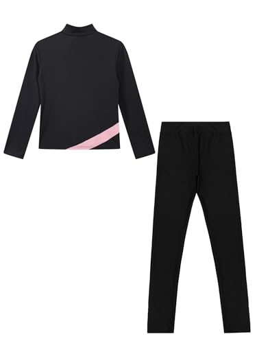 JEATHA Kids Girls Ice Skating Outfit 2-Piece Gym Training Suit Figure Skating Spiral Jacket Tights Pants Set 6