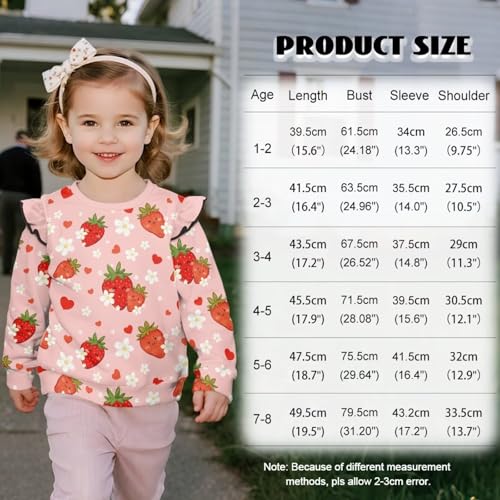 • Size: Cute sweater shirts for girls are available in 6 sizes, suitable for kindergarten children age1-2/2-3 years/3-4 years/5-6 years/7-8 years, please refer to our size chart to ensure a perfect fit before placing your order