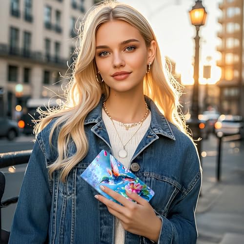HOT ! RFID Blocking Leather Wallet for Women and Men, Colorful Hummingbird Compact Bifold Credit Card Holder with RFID Protection, Small Ladies Slim Minimalist Wallet