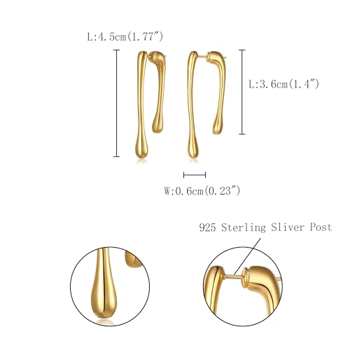 • Size: The size of gold earrings is 0.6cm(0.23") width, 4.5cm(1.77") long side and 3.6cm(1.5") short side. Delicate and lightweight.