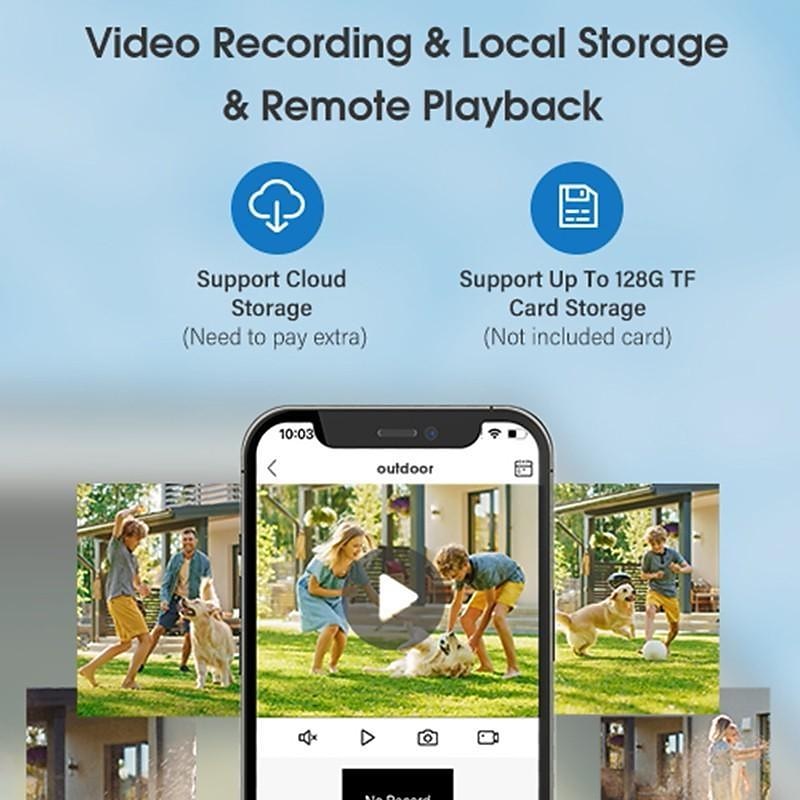 Highlights Product Selling Points: 1. Superior Day and Night Vision: With the 10-15M (IR LED) technology, this product ensures clear vision even in low light conditions. 2. Efficient Motion and Humanoid Detection: The device is equipped with advanced sensors to detect any motion or human presence, ensuring maximum security. 3. Convenient Wireless Connectivity: Our camera supports easy connection to your home network through wireless 2.4Ghz WIFI, making installation hassle-free. 4. Real-Time Two-Way Audio Communication: Stay connected with your loved ones or keep an eye on your property with the built-in audio feature that allows you to speak and listen in real-time. 5. 360-Degree Pan and 90-Degree Tilt: Experience enhanced monitoring capabilities with the camera's ability to rotate 355 degrees horizontally and tilt 90 degrees vertically. (Note: This feature is only applicable to the bottom dome cameras) 6. Ample Storage Space: Save all your precious moments with the support for a TF Card of up to 128GB, providing ample room for recordings. 7. Convenient Remote Viewing: Stay in control and monitor your premises from anywhere using the dedicated app on your smartphone. 8. Dual Storage Options: Benefit from both TF card storage and cloud storage (additional charges apply for cloud storage).