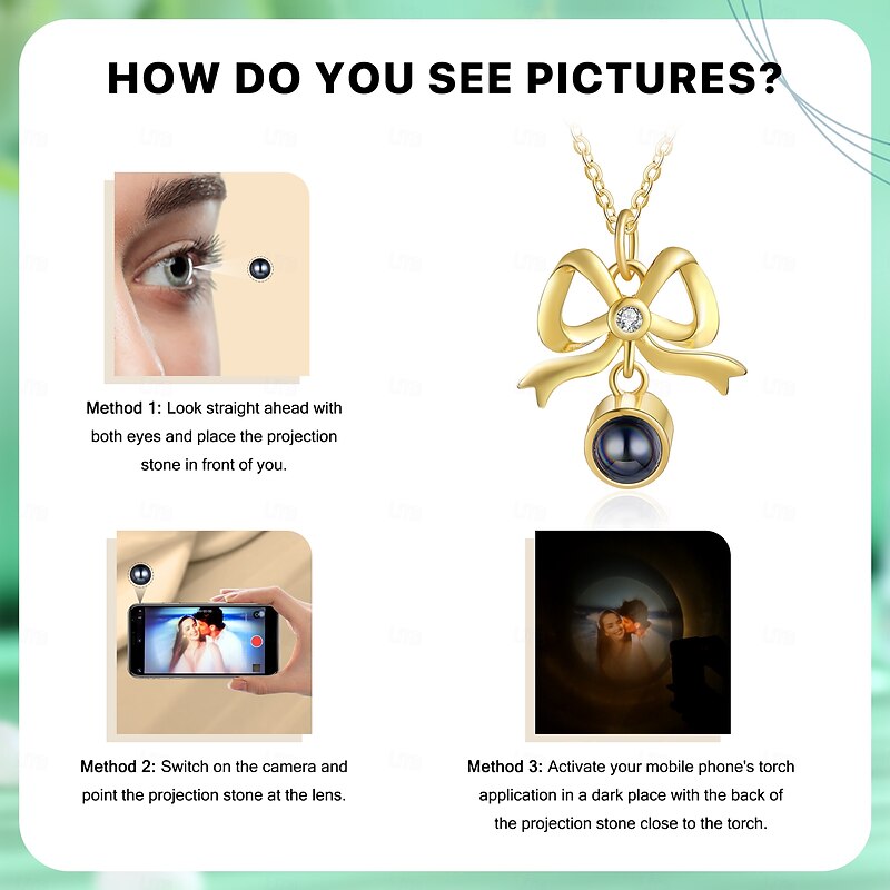 Personalized Bowknot Necklace Custom Best Gift for Mom – Photo Projection Pendant, Perfect for Women's Day, Mother's Day, Valentine's Day, Christmas, or Birthday 8