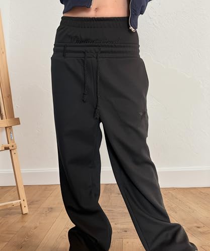 HOT ! Mens Y2K Wide Leg Sweatpants Drawstring Double Waisted Baggy Hip-Hop Vintage Pants Gym Workout Trousers