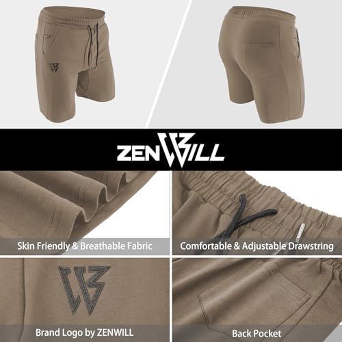 ZENWILL Mens 2 Pack Zip Gym Athletic Shorts, 7" Workout Running Fitness Cotton Training Shorts for Men Zip Pockets 4