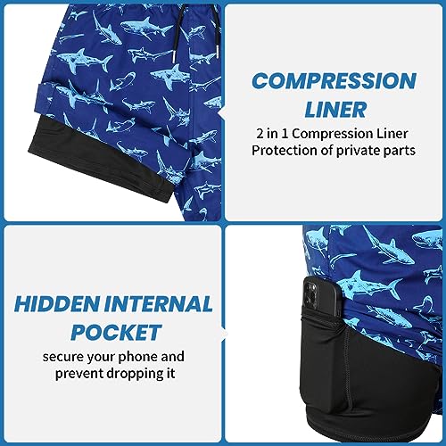 JOYSON Mens Swim Trunks with Compression Liner Quick Dry 5" Beach Shorts Workout Shorts with Pockets 5