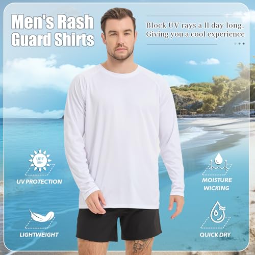 Guooolex UPF 50+ Rash Guard for Men Long Sleeve Swim Shirts Loose Fit Outdoor SPF Sun Protection Shirts Quick Dry 5