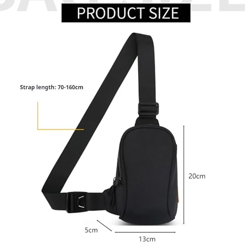 • 【Compact Size&Adjustable Strap】: Men's crossbody bag size is 5.11"L x 1.96" W x 7.87"H . This mini sling bag pairs a 2.5-inch-wide ergonomic strap with a breathable mesh back panel for all-day comfort.