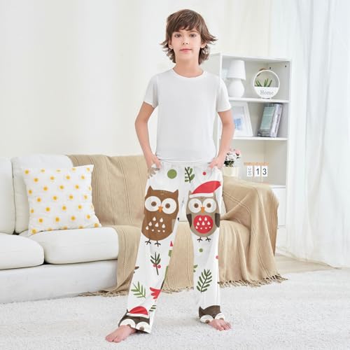 Owl Spruce Branch Boys Long Pants Soft Trousers Elastic Waist Kids Lounge Bottoms with Pockets S-XL 4