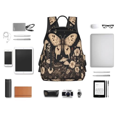 HOT ! Backpack For Women Men Gothic Floral Butterflies Aesthetic Retro Botanical Bookbag Lightweight Travel Casual Daypack Water Resistant Outdoor Hiking Sport Rucksack