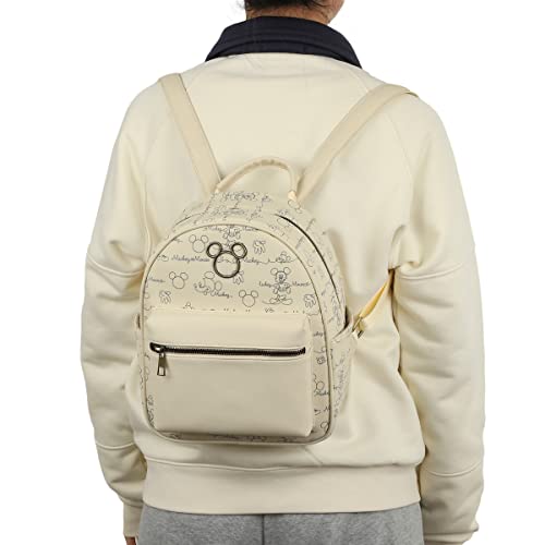 Disney Mickey Mouse Line Art Women's White & Gold Backpack 7