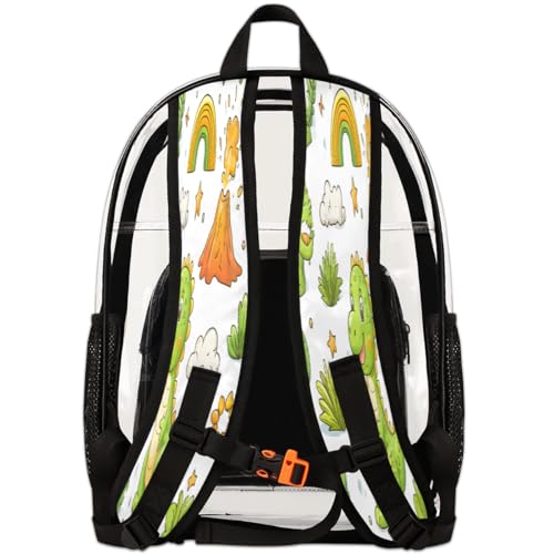 Dinosaur Clear Backpack for Stadium Events, Cartoon Plants Waterproof Clear Bag for Women Men Adult Sport Work Daily Music Festival and Concerts 7
