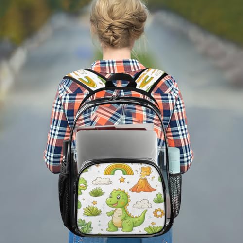 Dinosaur Clear Backpack for Stadium Events, Cartoon Plants Waterproof Clear Bag for Women Men Adult Sport Work Daily Music Festival and Concerts 6