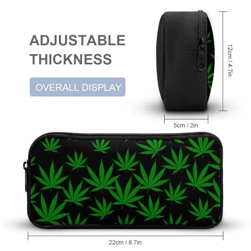 Green Weed Printed Backpack with Lunch Box Bag Pencil Case Pouch 3pcs Daypack Set for Women Men 3