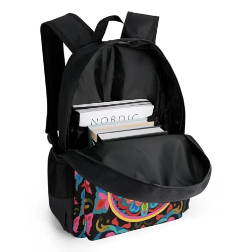 Supdreamc Rucksack Anti-Theft Multipurpose Large Capacity Carry On Bag - Colorful Eye Hamsa Hand Lotus Ethnic Indian Art Travel Hiking Bag & Day Pack With Side Pockets 7