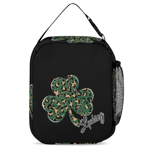 Lucking Clovers Leopards Print Travel Backpack Lunch Box Pencil Case 3Pcs Set for Men Women Office Outing University 3