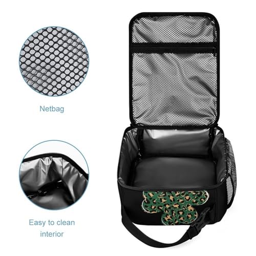 Lucking Clovers Leopards Print Travel Backpack Lunch Box Pencil Case 3Pcs Set for Men Women Office Outing University 5