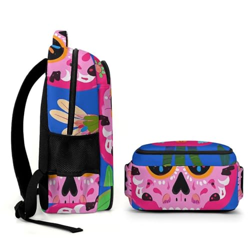 HOT ! Backpack for Travel, Sugar Skull Flower Print Modern Backpack Shoulder Bag with Adjustable Straps, Side Pockets & Reinforced Bottom
