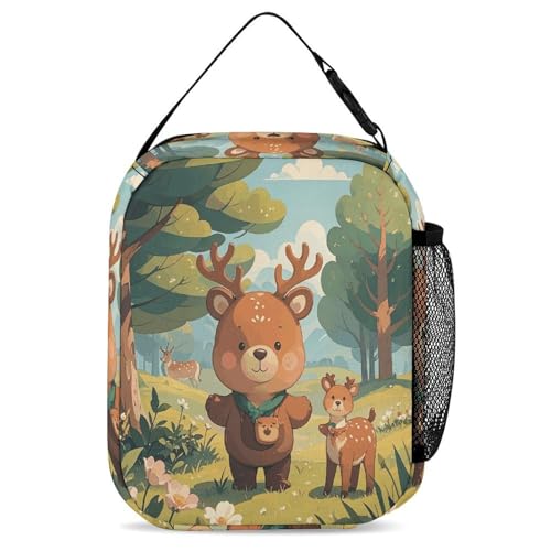 3Pcs Backpack Sets Country Style Bear Deer Print Travel Daypack 3 in 1 Lightweight Backpack Set with Lunch Bag And Cosmetic Bag 3