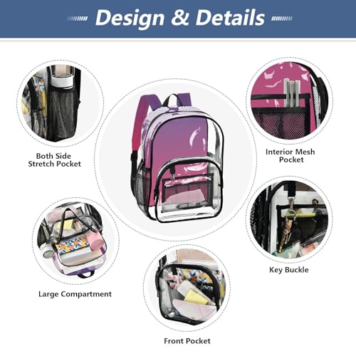 Travel Clear Backpack Floral Boys Backpacks for Girls See through Approved Bag Ombre Violet Cerise Gradient 4