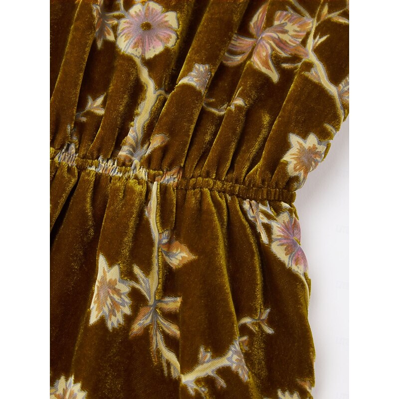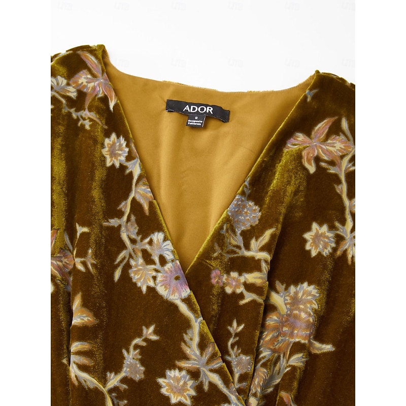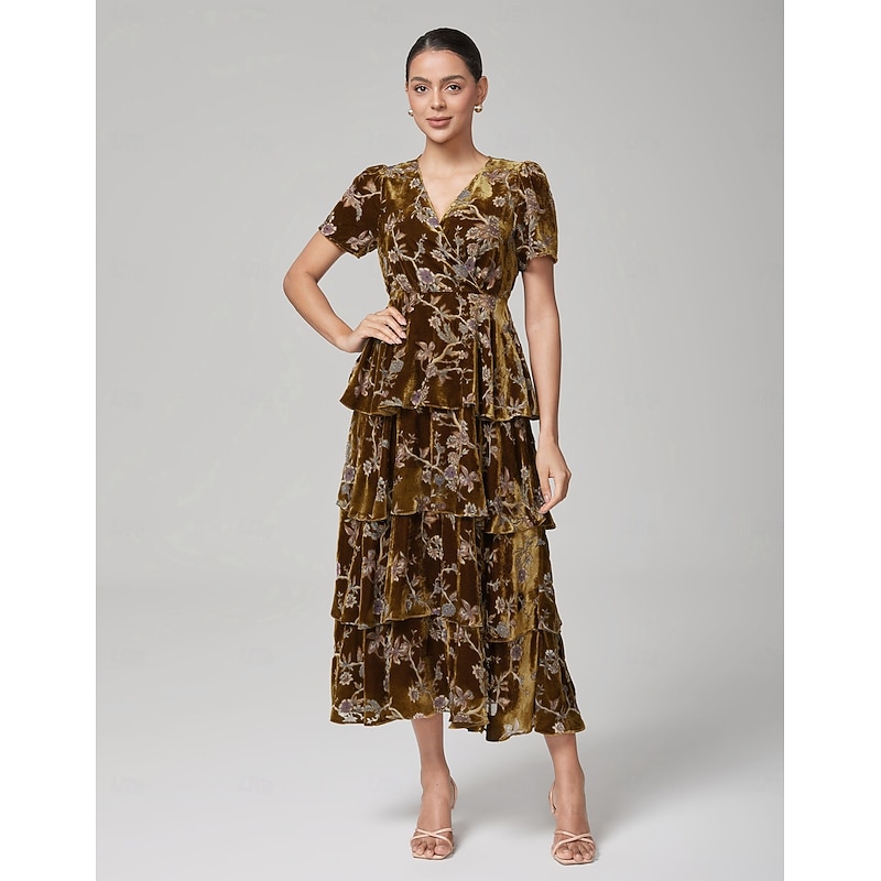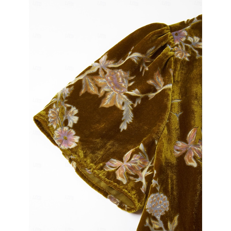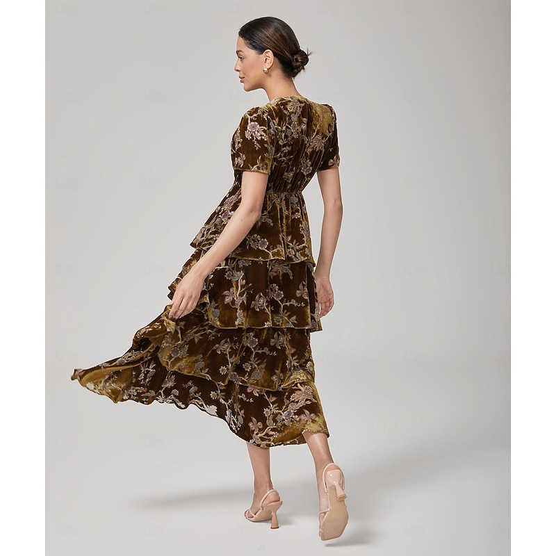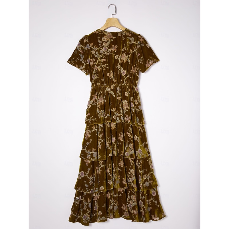More information about Women's Female Casual Dress Long Dress Maxi Dress Brown Short Sleeve Floral Fall Cross-Seasons V Neck Vintage XS S M