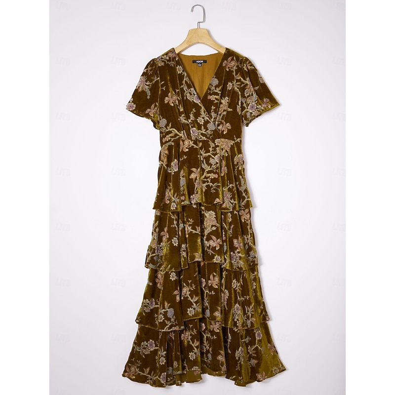 Women's Female Casual Dress Long Dress Maxi Dress Brown Short Sleeve Floral Fall Cross-Seasons V Neck Vintage XS S M 15