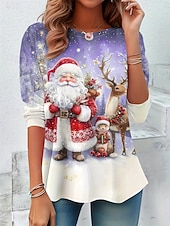More information about Women's T Shirt Casual Print Long Sleeve Regular Tops Crew Neck Daily Blue Purple Green Spring Fall