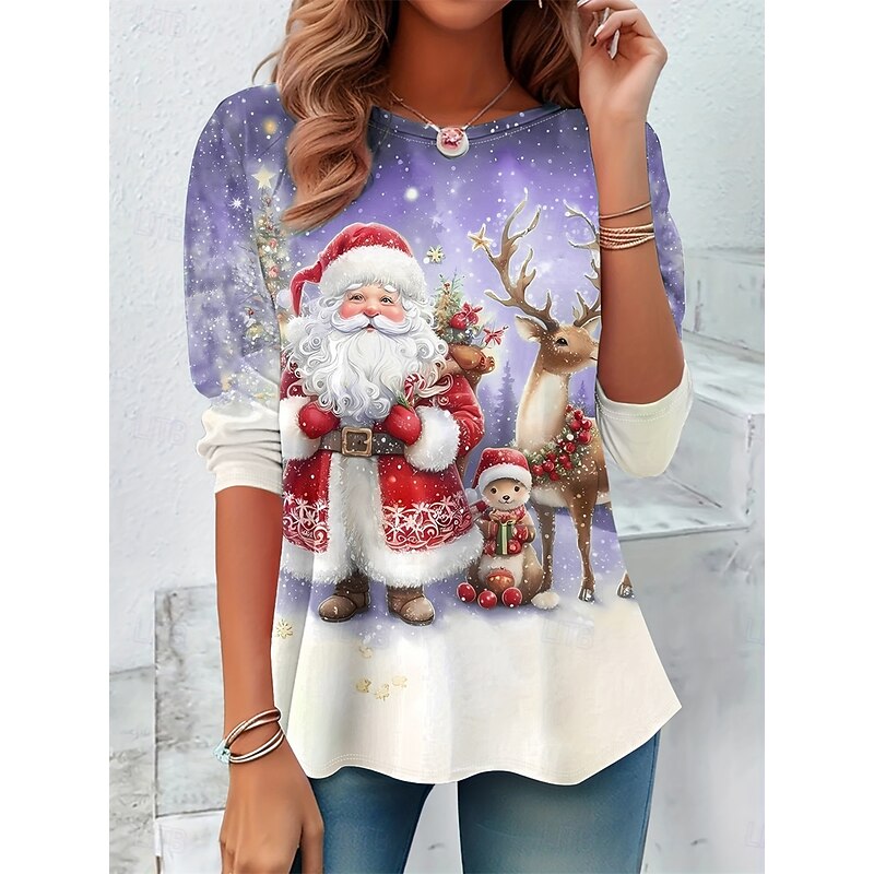 Women's T Shirt Casual Print Long Sleeve Regular Tops Crew Neck Daily Blue Purple Green Spring Fall 4