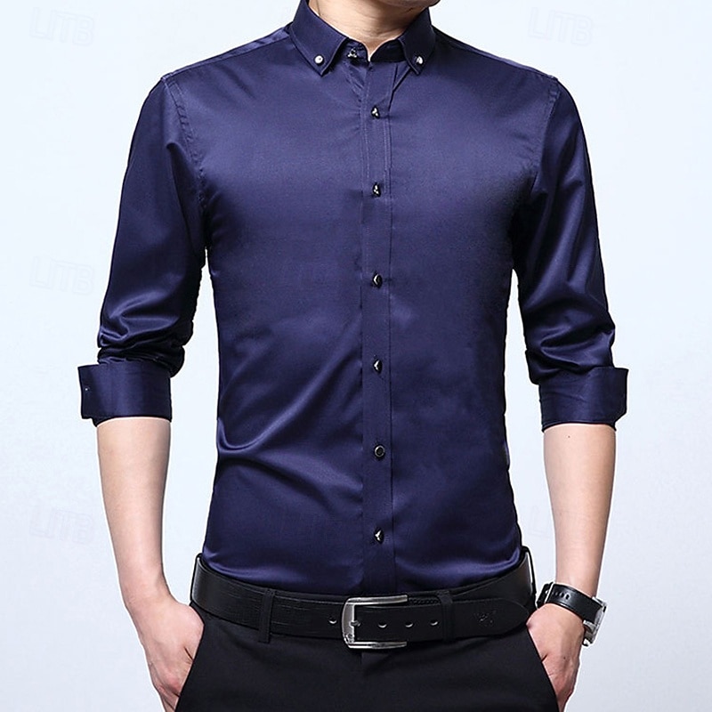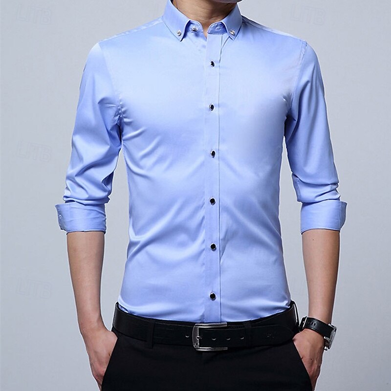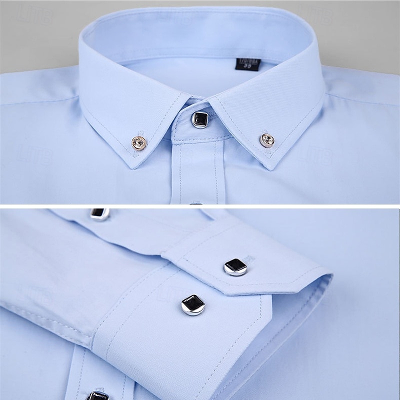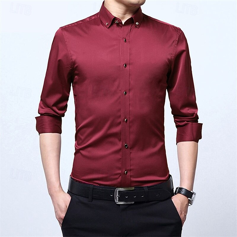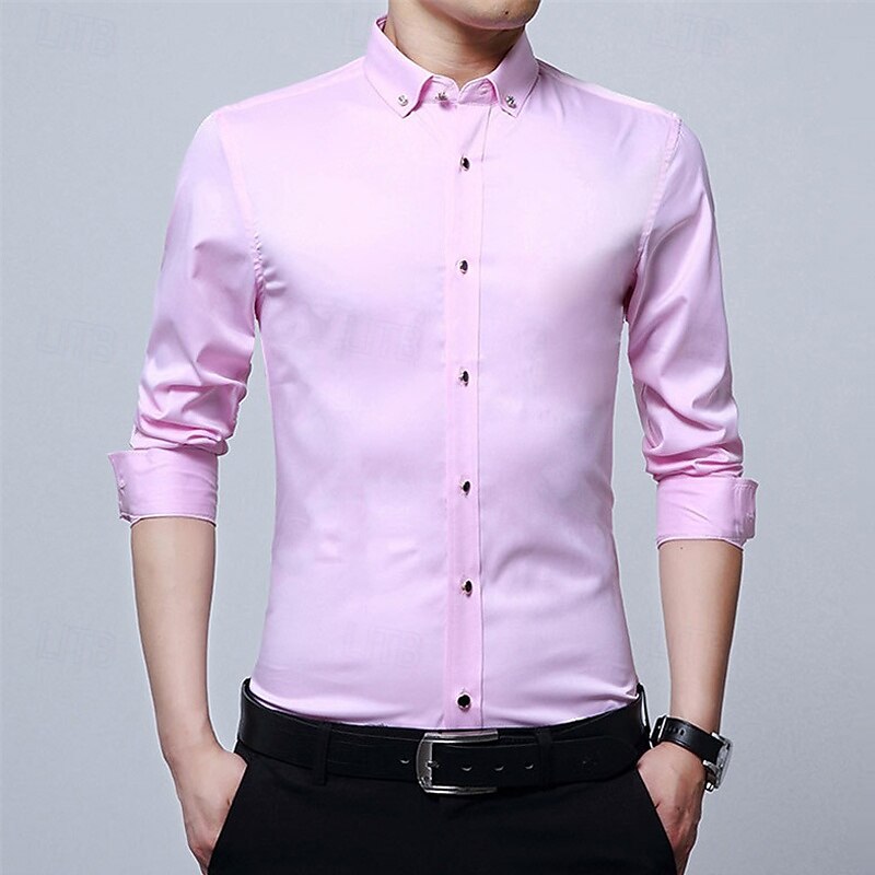 More information about Men's Shirt Dress Shirt Button Up Shirt Plain Wedding Party Black White Pink Wine Long Sleeve Lapel Spring Fall Clothing Apparel Pocket