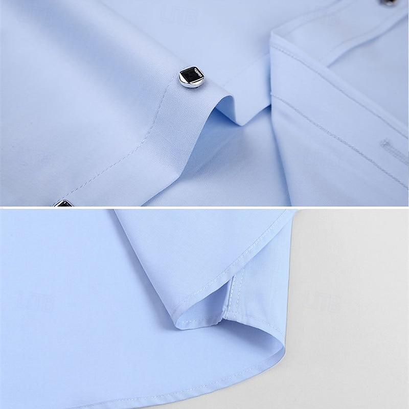 Men's Shirt Dress Shirt Button Up Shirt Plain Wedding Party Black White Pink Wine Long Sleeve Lapel Spring Fall Clothing Apparel Pocket 7