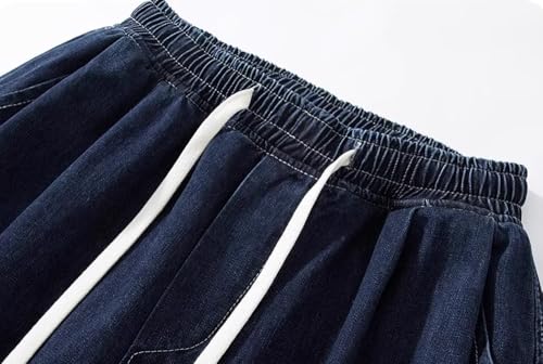 Men's Jeans Spring Summer Japanese Workwear Elastic Waist Denim Wide Leg Long Pants for Men 6