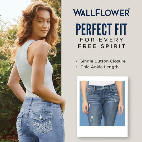 WallFlower Women's Fearless Curvy Ankle Denim Super High-Rise Insta Vintage Juniors Jeans (Standard and Plus) 1