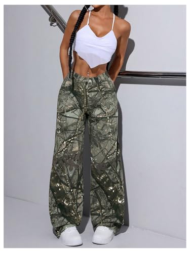 Floerns Women's Realtree Camo Print Jeans Low Waist Hunting Straight Leg Denim Pants 4